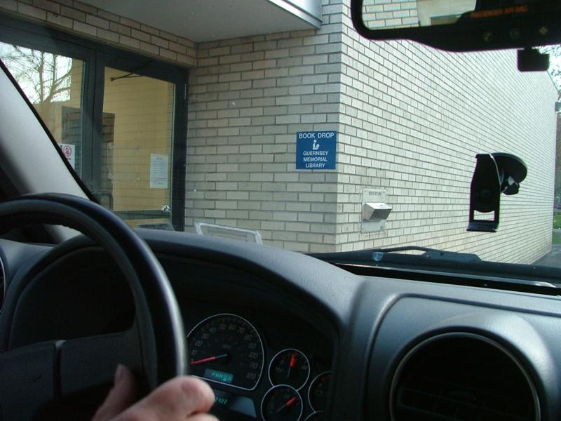 Чтобы вернуть книги, можно даже не выходить из машины. Вот я подъезжаю к окошку «drive-through».