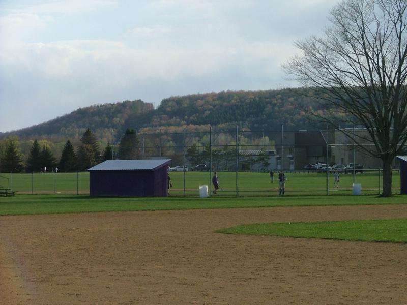Между школьными зданиями и рекой несколько огромных бейсбольных площадок. Игра совершенно идиотская, (да не услышат меня американцы!)