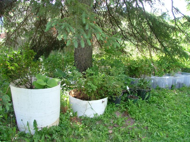 Выкапываю у стены и переношу во временные контейнеры под елью…