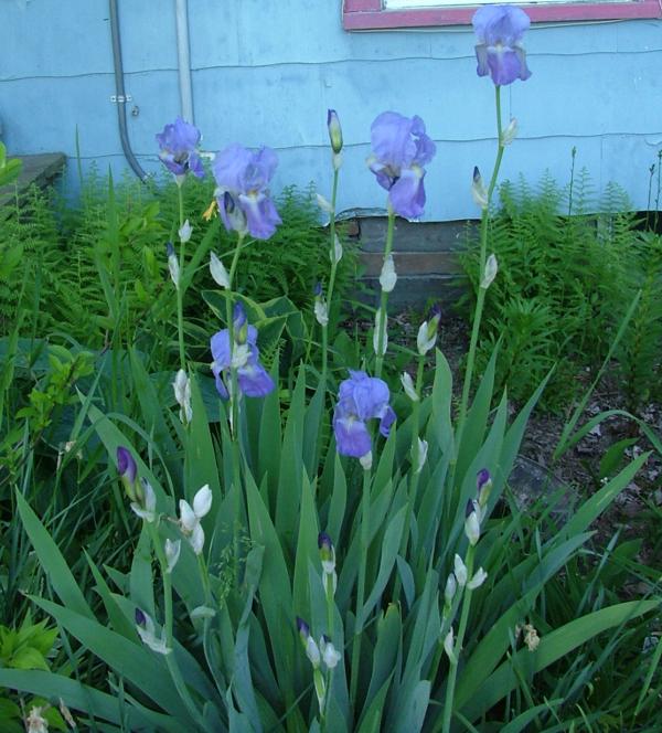 Под окнами библиотеки расцвели сиреневые ирисы.