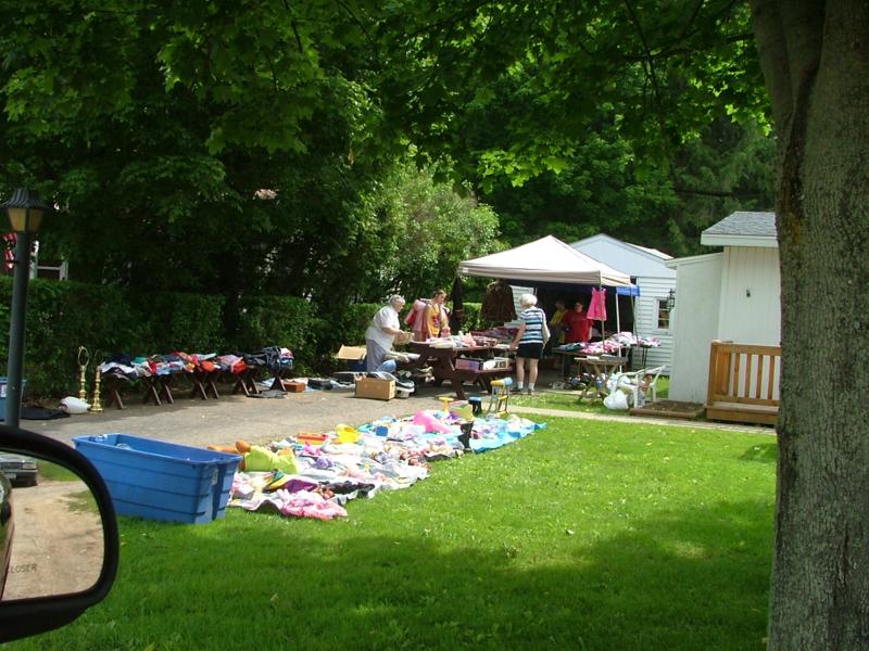 А эта барахолка начинается на лужайке и продолжается в гараже…