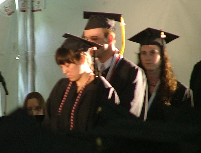 31 мая, 2010 by HelenКогда называют фамилию студента, в алфавитном порядке, он становится в очередь и продвигается к трибуне. Это Мейган стоит в такой очереди.