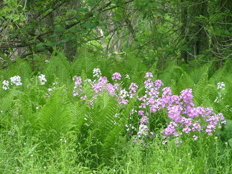 Dame’s Rocket и папоротники