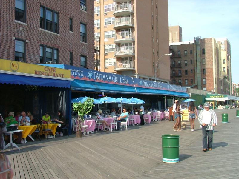 С одной стороны пляж, с другой рестораны. Обычный курортный пейзаж. Публика — или черные, или русские.