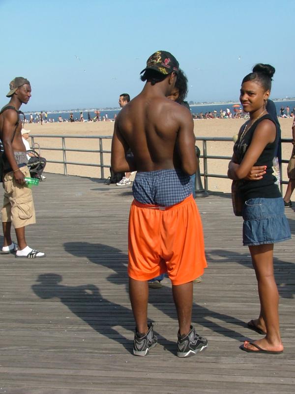 12 июня, 2010 by Helenсамая бездельная, потому на пляжу весь день… М ода — штаны должны буть обязательно спущены, чтобы видно было нижнее белье. Это не пляжная мода, а городская. Брюки носят так же.