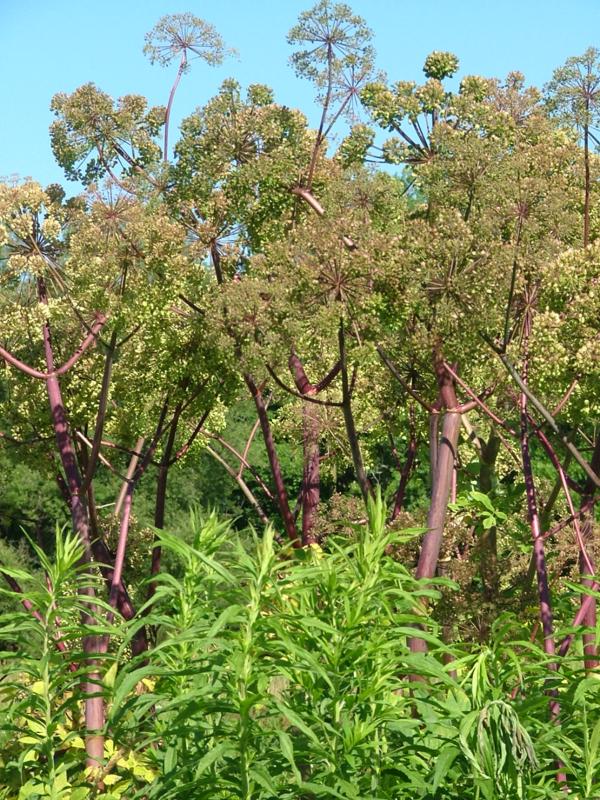 а вот дудник уже начинает буреть — созревают семена. У подножия дудника, зеленые веточки — это голденрод, он чуть выше меня. Так что какой высоты дудник прикиньте сами.