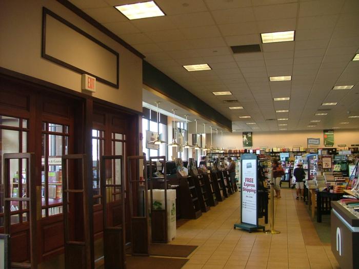 Вид на вход-выход и кассы.
