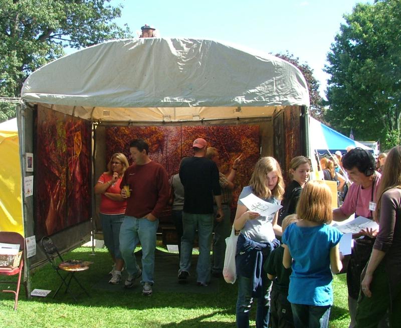 А этот живописец позволяет всем желающим наложить красочный мазок на свой абстрактный шедевр.