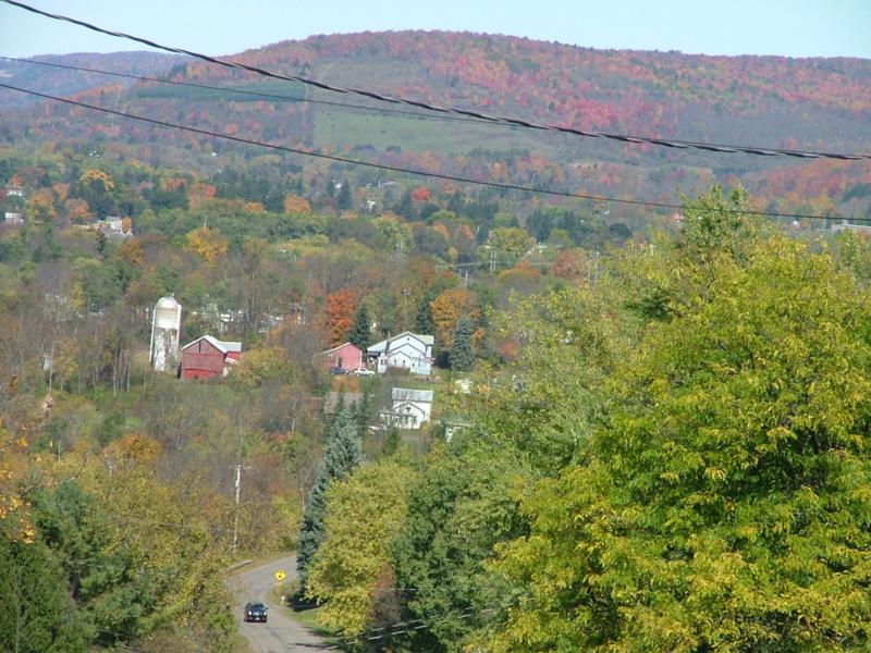 9 октября, 2010 by HelenНа спуске с горочки вид на наше поместье — правее (бело-серый) дом, рядом (красный) гараж, перед ним даже машины видны Сережкина и Мишина, еще левее — амбар и силосная башня.
