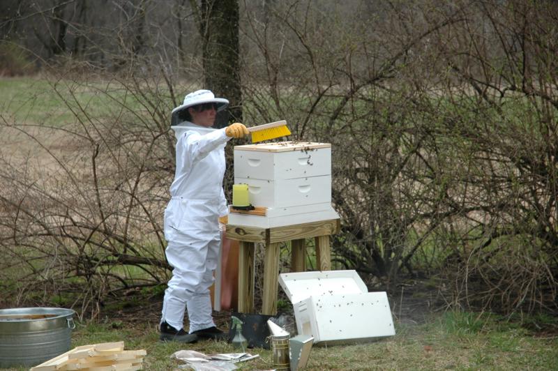 Мейган загоняет всех внутрь, чтоб надеть на улей крышу.