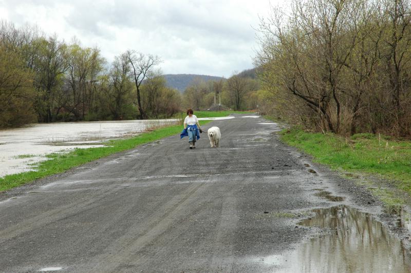 А до машины еще идти и идти… Сюда дорога перекрыта, добраться можно только пешком. Бедный Шарик в своей зимней шубе еле тащится.