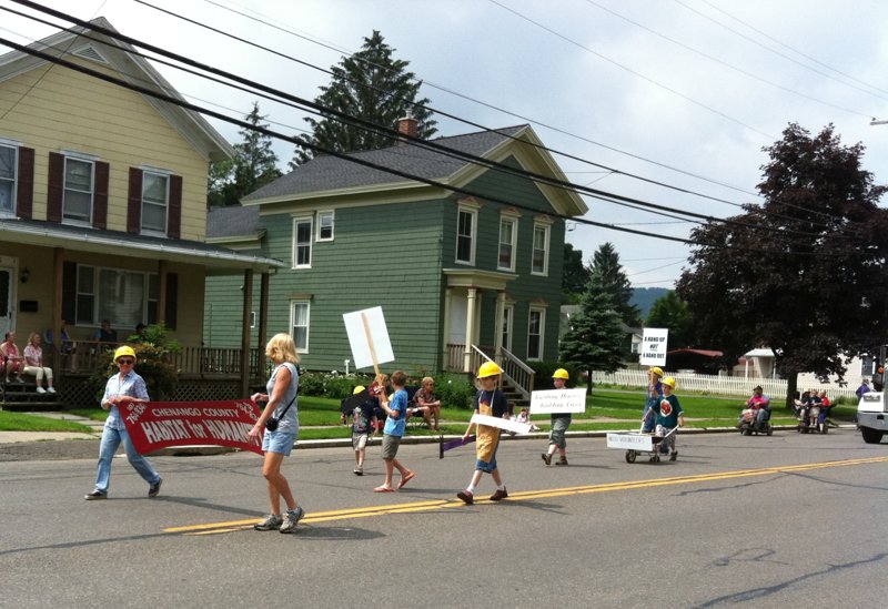А вот интересная организация — Habitat for Humanity. Такие организации есть по всей Америке. Ее члены собирают пожертвования, на которые покупают участок земли, или старый заброшеный дом. Потом добровольцы строят, или восстанавливают этот дом и отдают его малообеспеченной семье. Отдают не бесплатно. За дом надо платить помесячно лет 20-30. Но плата вполне умеренная. Организацию не богатая. В Ченанго в год они осиливают один дом. Помогают им все — кто деньгами, кто трудом, кто стройматериалами.