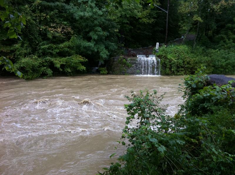 8 сентября, 2011 by HelenЧуть правее от «купальни» — мост смыло еще весной. С гор бегут потоки и на месте бывшего моста симпатичный водопадик.