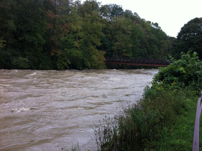 По висячему мосту мы не рискнули пройтись… Он теперь почти воды касается.
