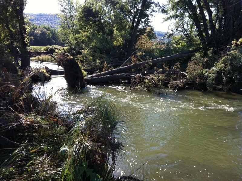 26 сентября, 2011 by HelenОстровочек справа река откусила от нашего берега уже на нашей памяти. Теперь она подмыла и уронила наши деревья. Они же и перекрывают «новое» русло. Пройдет новейшее русло по нашему берегу или противоположному — ясно будет уже весной.