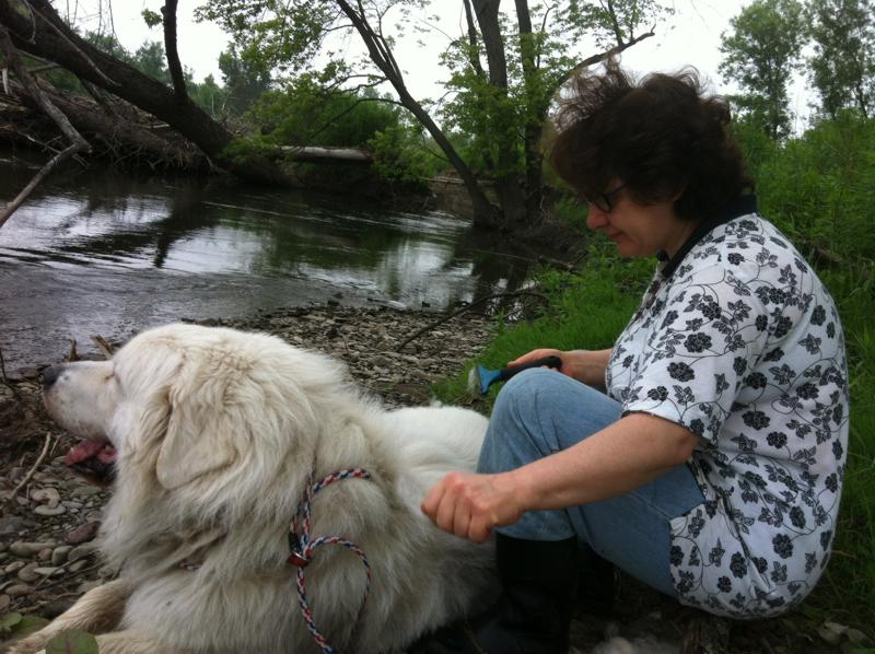 28 мая, 2012 by HelenЖарко, а шуба все еще зимняя. По утрам ходим на речку вычесываться, приводить себя в порядок.
